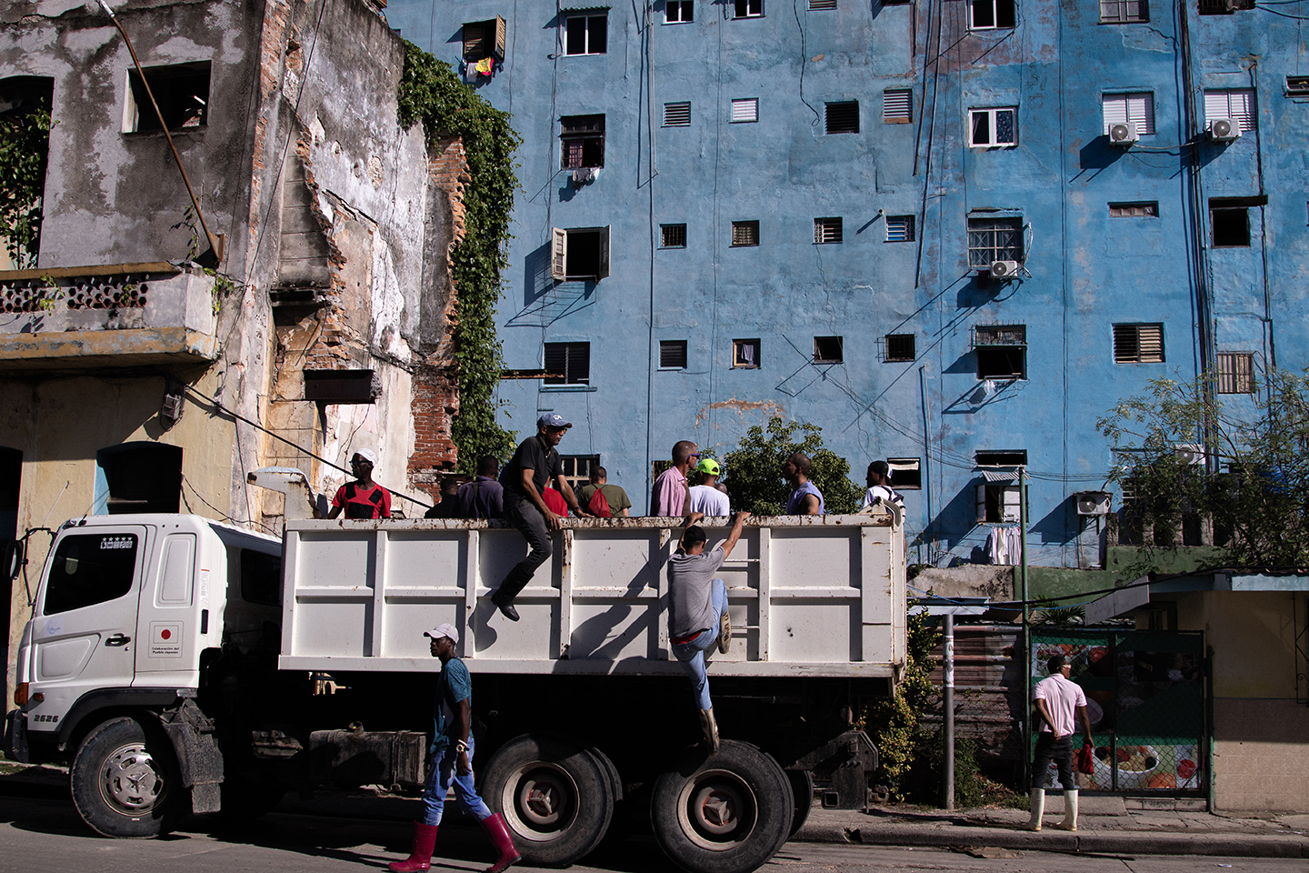 Le chantier Dans un quartier populaire de La Havane, un camion décharge des ouvriers dans un chantier.… Le chantier