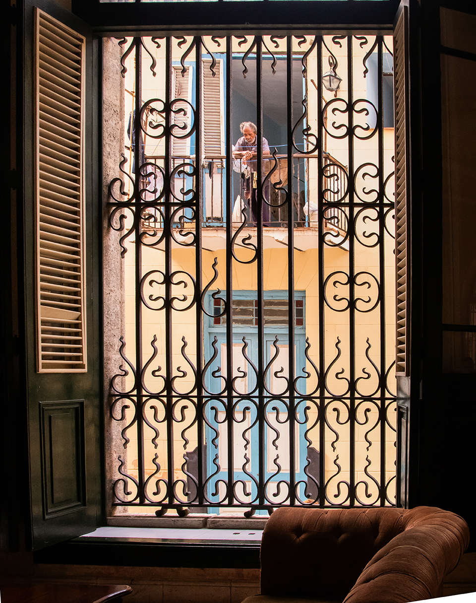 L’homme au balcon. Un homme, triste et pensif ris à travers les barreaux d’une fenêtre à la ville de… L’homme au balcon.