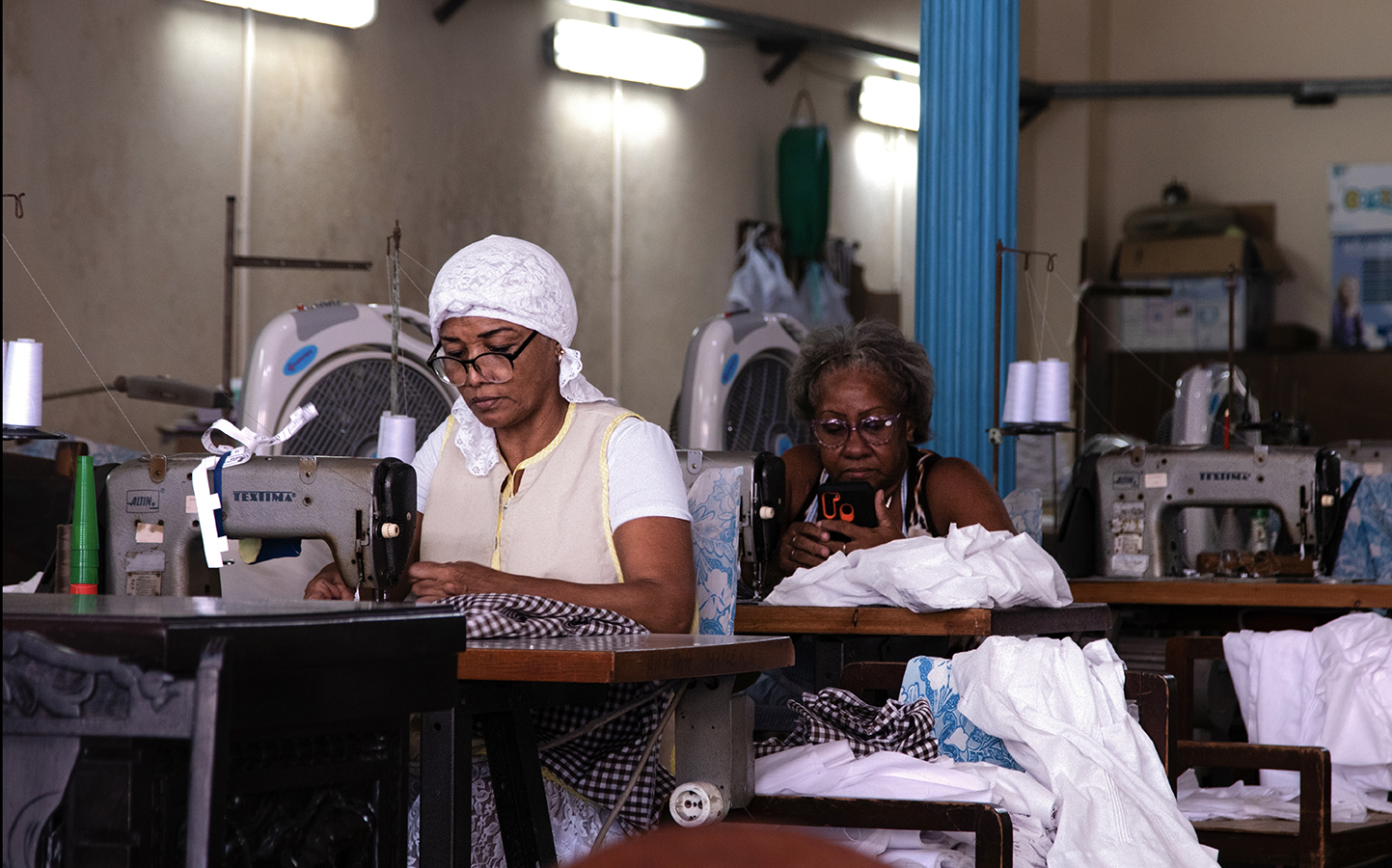La couturière Dans l’une des coopératives, les femmes cousent et vendent leurs produits pour survivre… La couturière